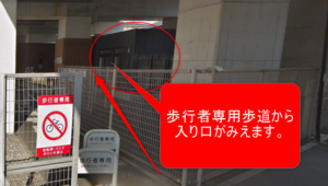 歩行者専用の歩道をとおり、建物の中へご自由にお入りください。