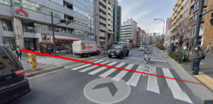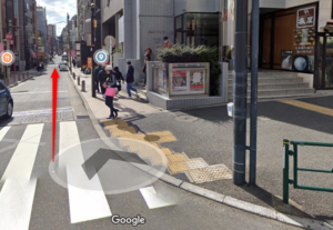 出口正面の横断歩道を渡ります。