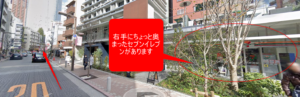 右側のビル1階に「セブン・イレブン」が見えてきます。